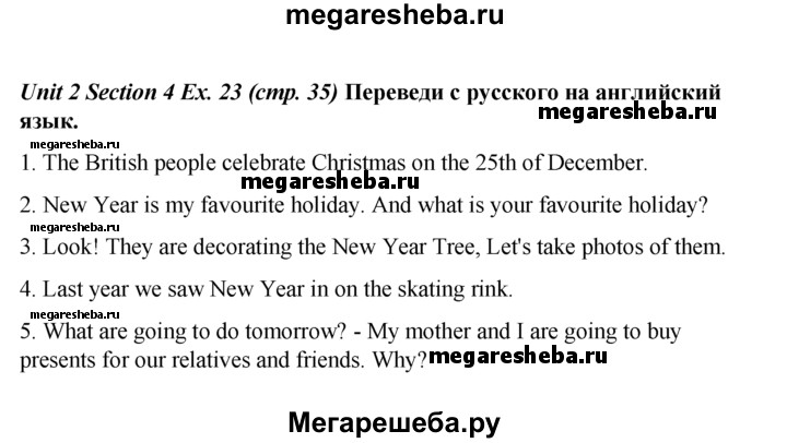 Подробный решебник (ГДЗ) по Английскому языку за 5 (пятый) класс рабочая тетрадь - готовый ответ unit 2 section 1-4 - 23. Авторы учебника: Биболетова, Денисенко, Трубанева. Издательство: Титул 2016-2023.