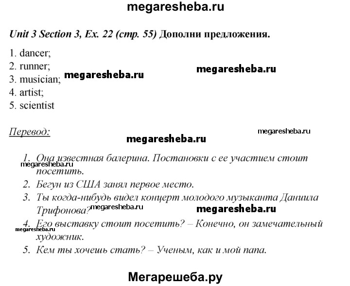 ГДЗ по английскому языку 5 класс Биболетова рабочая тетрадь unit 3 section 1-7 - 22