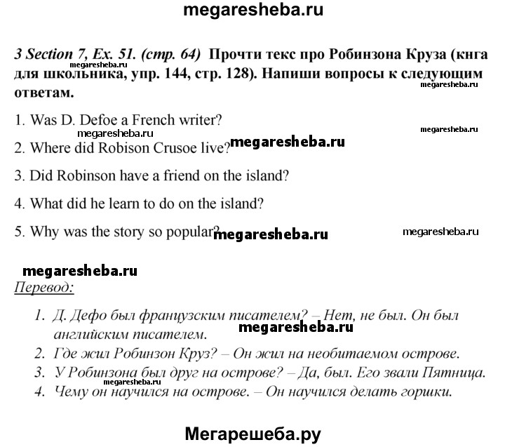 Подробный решебник (ГДЗ) по Английскому языку за 5 (пятый) класс рабочая тетрадь - готовый ответ unit 3 section 1-7 - 51. Авторы учебника: Биболетова, Денисенко, Трубанева. Издательство: Титул 2016-2023.