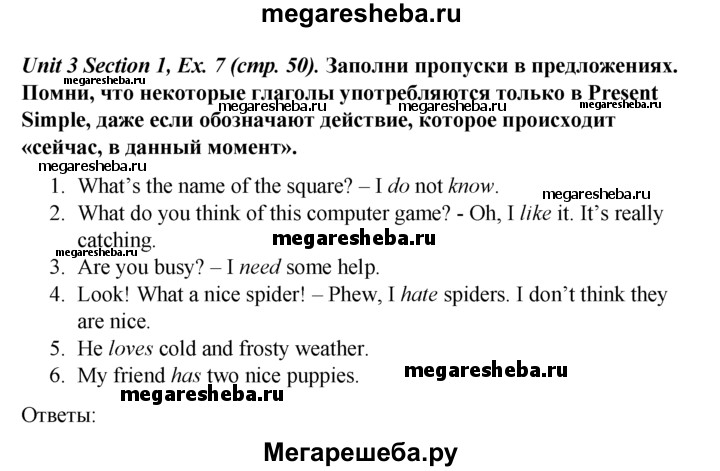 Подробный решебник (ГДЗ) по Английскому языку за 5 (пятый) класс рабочая тетрадь - готовый ответ unit 3 section 1-7 - 7. Авторы учебника: Биболетова, Денисенко, Трубанева. Издательство: Титул 2016-2023.