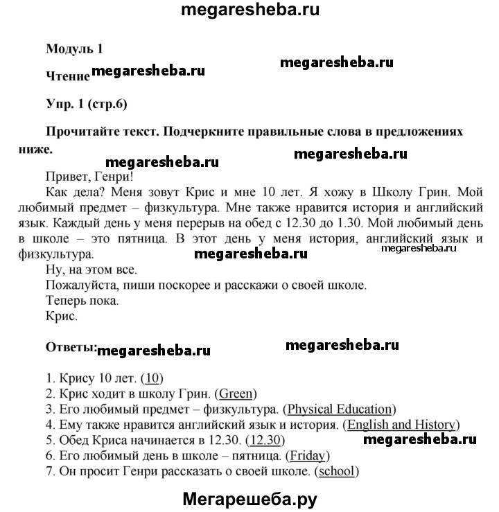 ГДЗ по английскому языку 5 класс Ваулина тренировочные упражнения в формате ГИА module 1 - 1