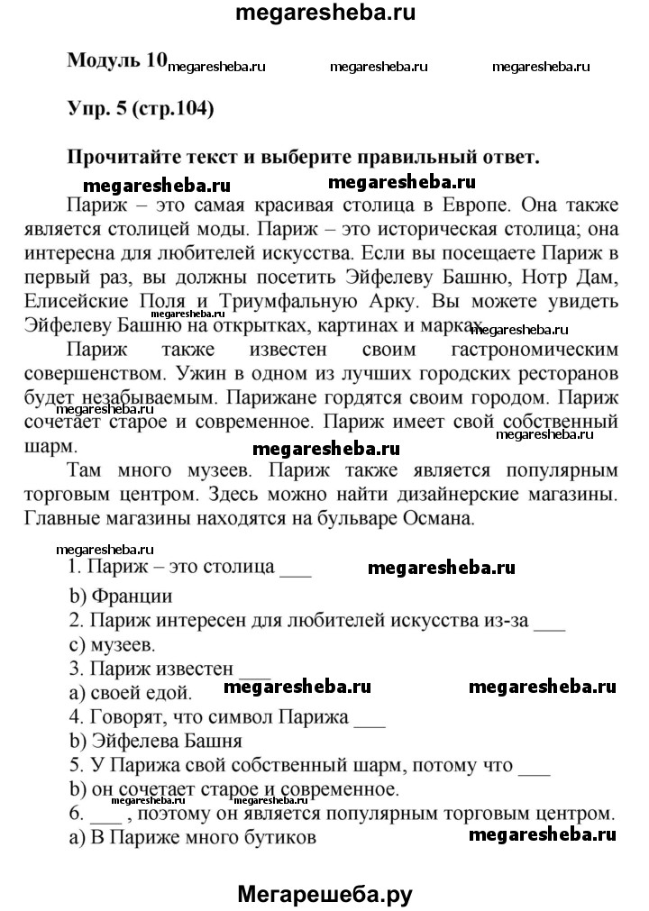 ГДЗ по английскому языку 5 класс Ваулина тренировочные упражнения в формате ГИА module 10 - 5