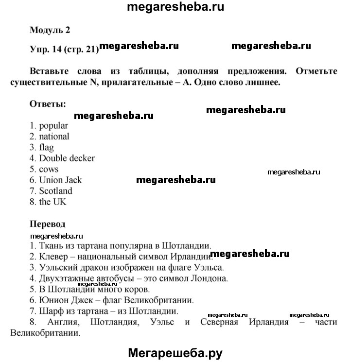 Подробный решебник (ГДЗ) по Английскому языку за 5 (пятый) класс тренировочные упражнения в формате ГИА - готовый ответ module 2 - 14. Авторы учебника: Ваулина, Подоляко. Издательство: Просвещение 2016-2023.