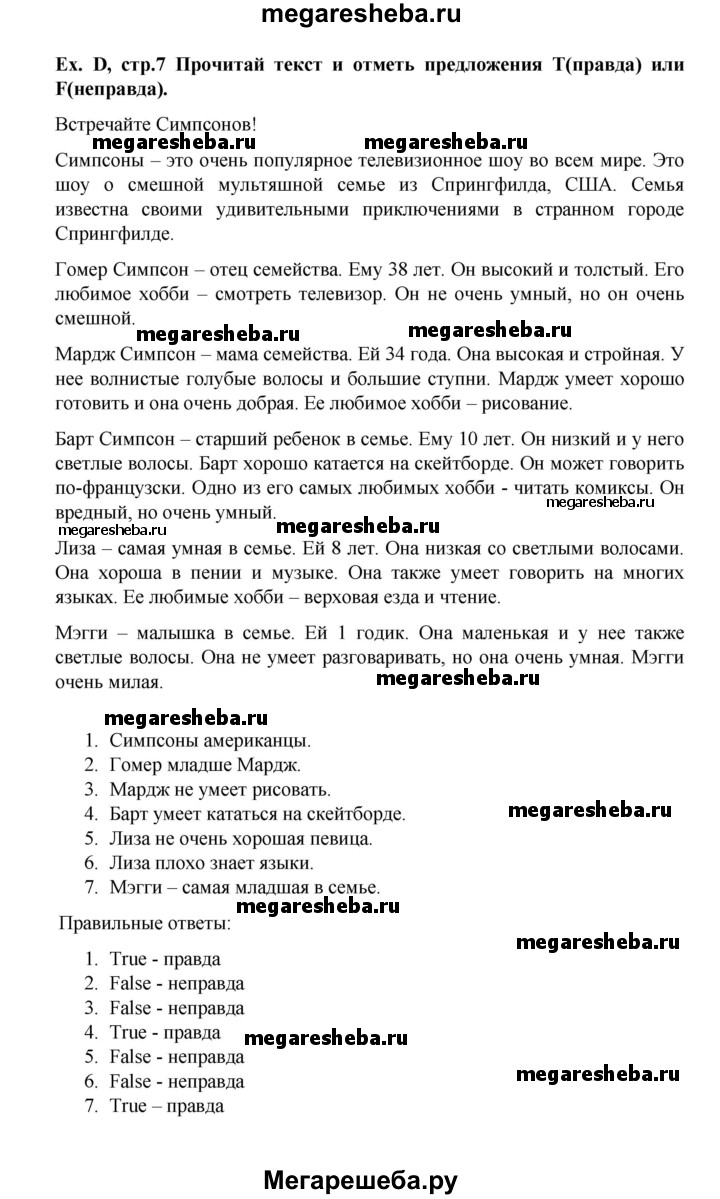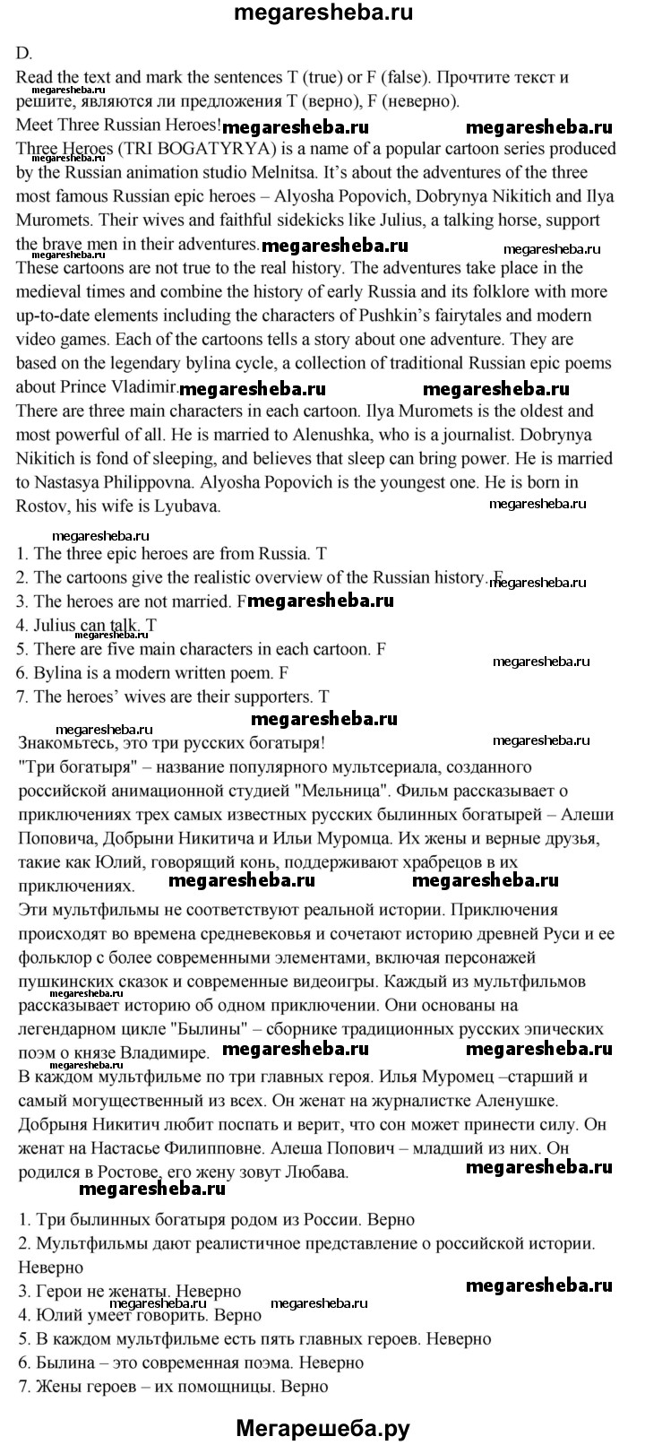 ГДЗ по английскому языку 5 класс Баранова контрольные задания Starlight Углубленный уровень test 1 - D