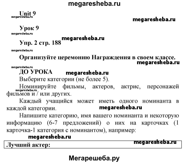Подробный решебник (ГДЗ) по Английскому языку за 6 (шестой) класс - готовый ответ часть 2. страница - 188-189. Авторы учебника: Демченко, Севрюкова, Повышенный уровень. Издательство: Высшая школа 2018.