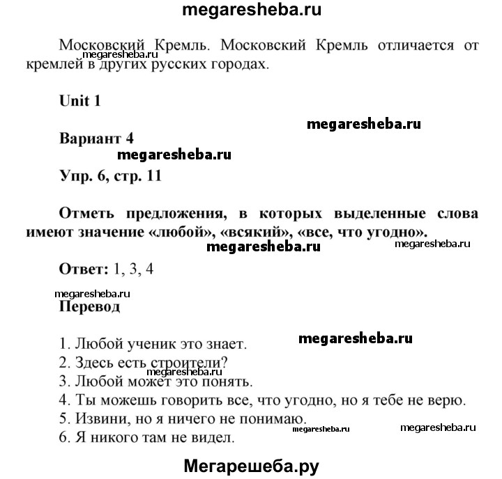 Подробный решебник (ГДЗ) по Английскому языку за 6 (шестой) класс контрольные работы Радужный английский - готовый ответ страница - 11. Авторы учебника: Афанасьева, Михеева, Баранова. Издательство: Дрофа 2018-2022.