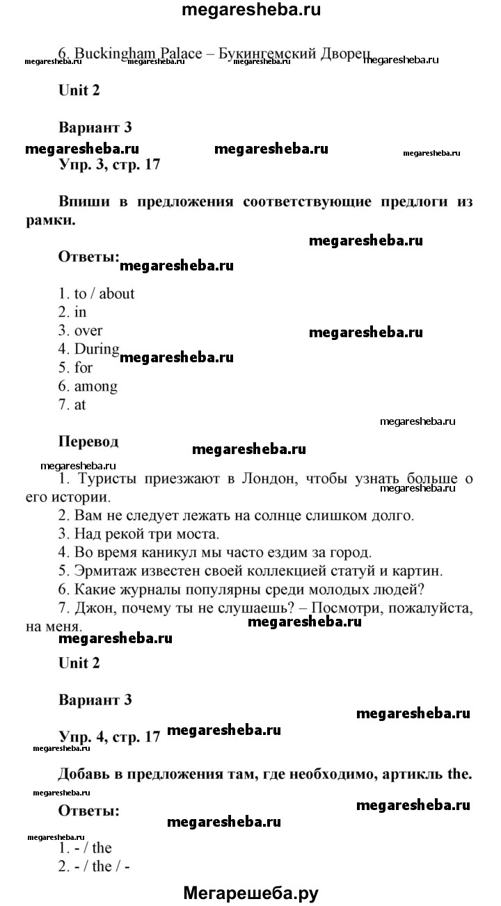 ГДЗ по английскому языку 6 класс Афанасьева контрольные работы Радужный английский страница - 17