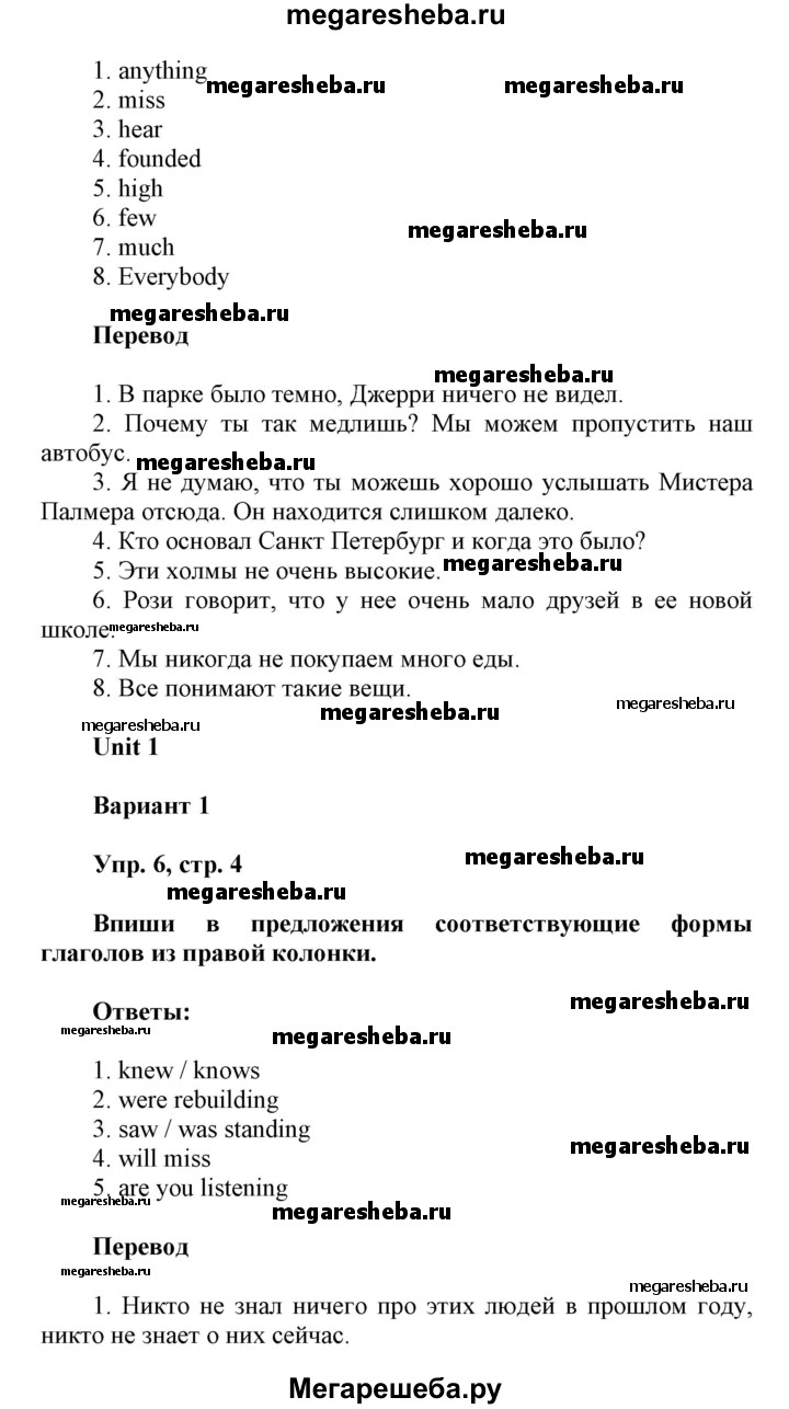 Подробный решебник (ГДЗ) по Английскому языку за 6 (шестой) класс контрольные работы Радужный английский - готовый ответ страница - 4. Авторы учебника: Афанасьева, Михеева, Баранова. Издательство: Дрофа 2018-2022.
