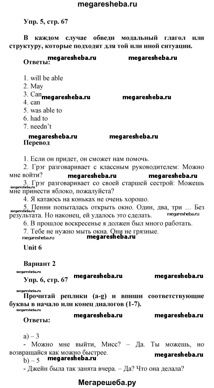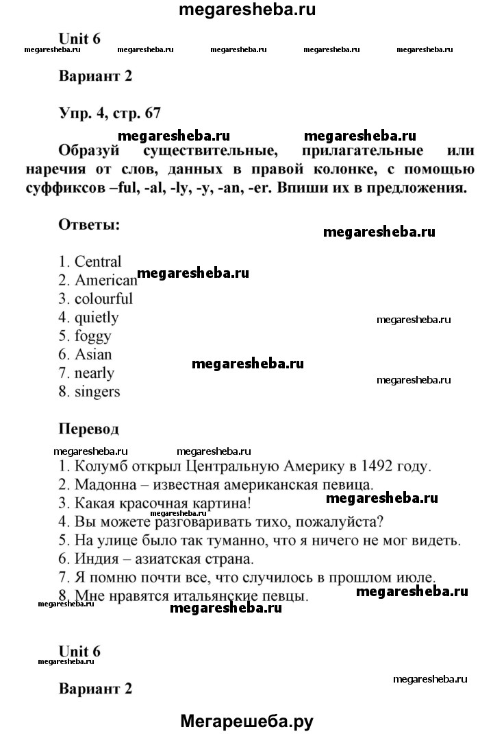 ГДЗ по английскому языку 6 класс Афанасьева контрольные работы Радужный английский страница - 67