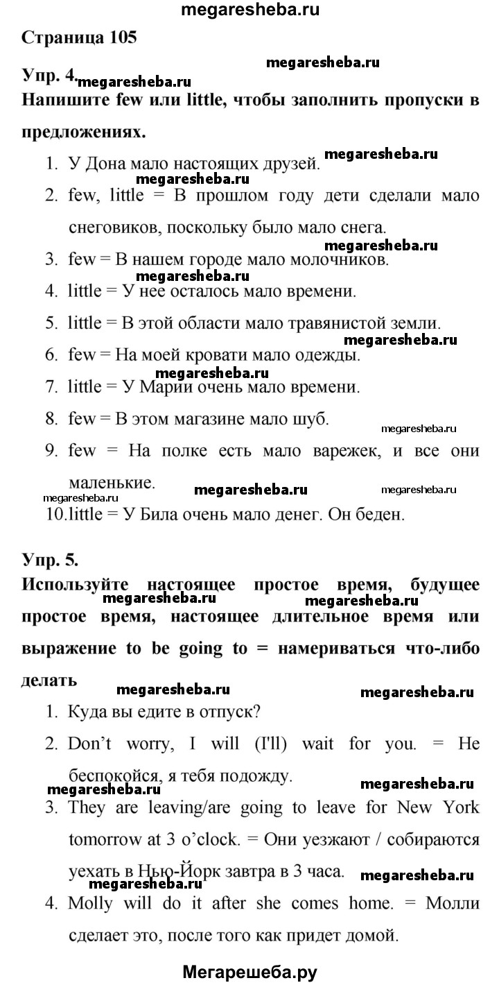 Подробный решебник (ГДЗ) по Английскому языку за 6 (шестой) класс лексико-грамматический практикум Rainbow - готовый ответ страница - 105. Авторы учебника: Афанасьева, Михеева, Баранова. Издательство: Дрофа 2016.