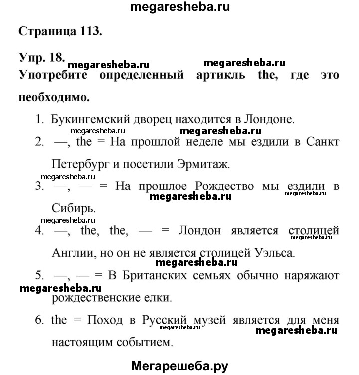 Подробный решебник (ГДЗ) по Английскому языку за 6 (шестой) класс лексико-грамматический практикум Rainbow - готовый ответ страница - 113. Авторы учебника: Афанасьева, Михеева, Баранова. Издательство: Дрофа 2016.
