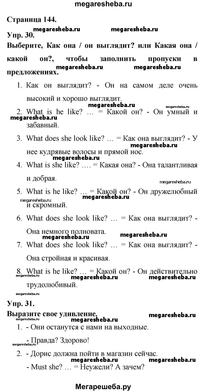ГДЗ по английскому языку 6 класс Афанасьева лексико-грамматический практикум Rainbow страница - 144