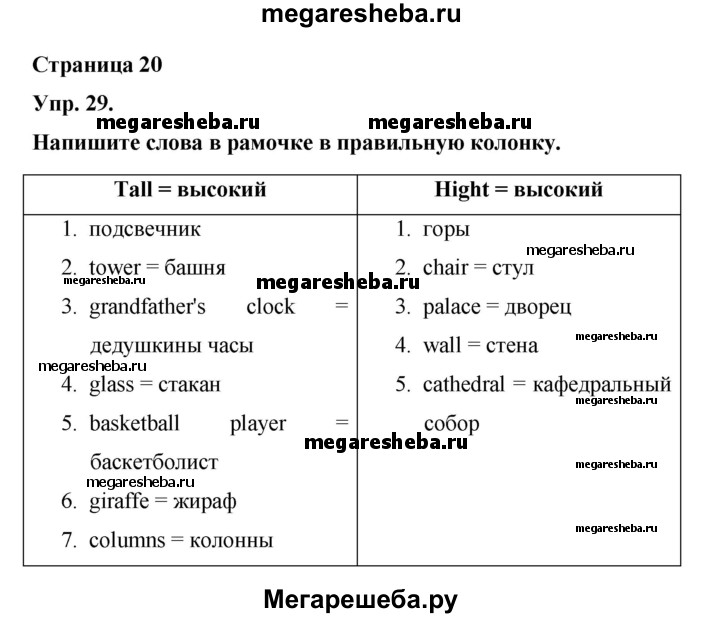 ГДЗ по английскому языку 6 класс Афанасьева лексико-грамматический практикум Rainbow страница - 20