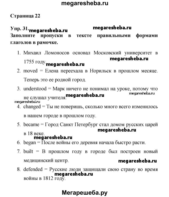 ГДЗ по английскому языку 6 класс Афанасьева лексико-грамматический практикум Rainbow страница - 22