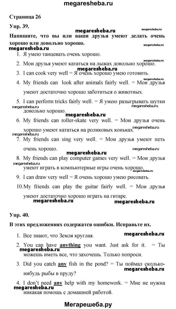 ГДЗ по английскому языку 6 класс Афанасьева лексико-грамматический практикум Rainbow страница - 26