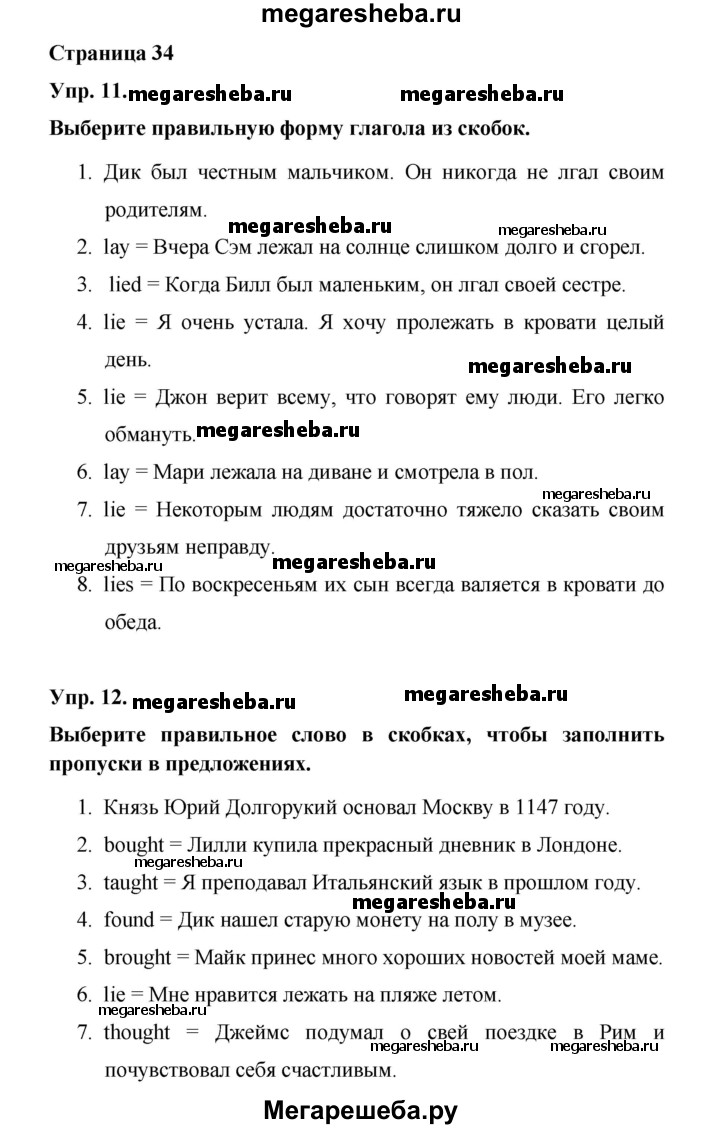 ГДЗ по английскому языку 6 класс Афанасьева лексико-грамматический практикум Rainbow страница - 34