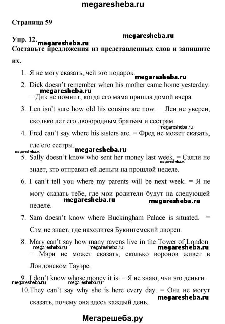 ГДЗ по английскому языку 6 класс Афанасьева лексико-грамматический практикум Rainbow страница - 59