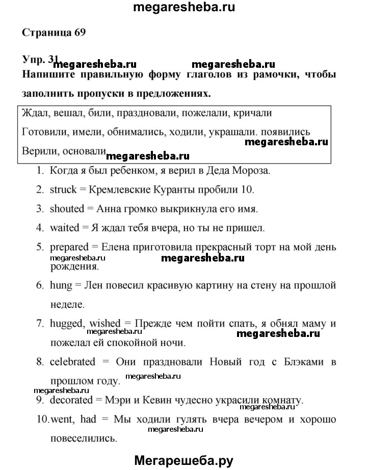 Подробный решебник (ГДЗ) по Английскому языку за 6 (шестой) класс лексико-грамматический практикум Rainbow - готовый ответ страница - 69. Авторы учебника: Афанасьева, Михеева, Баранова. Издательство: Дрофа 2016.