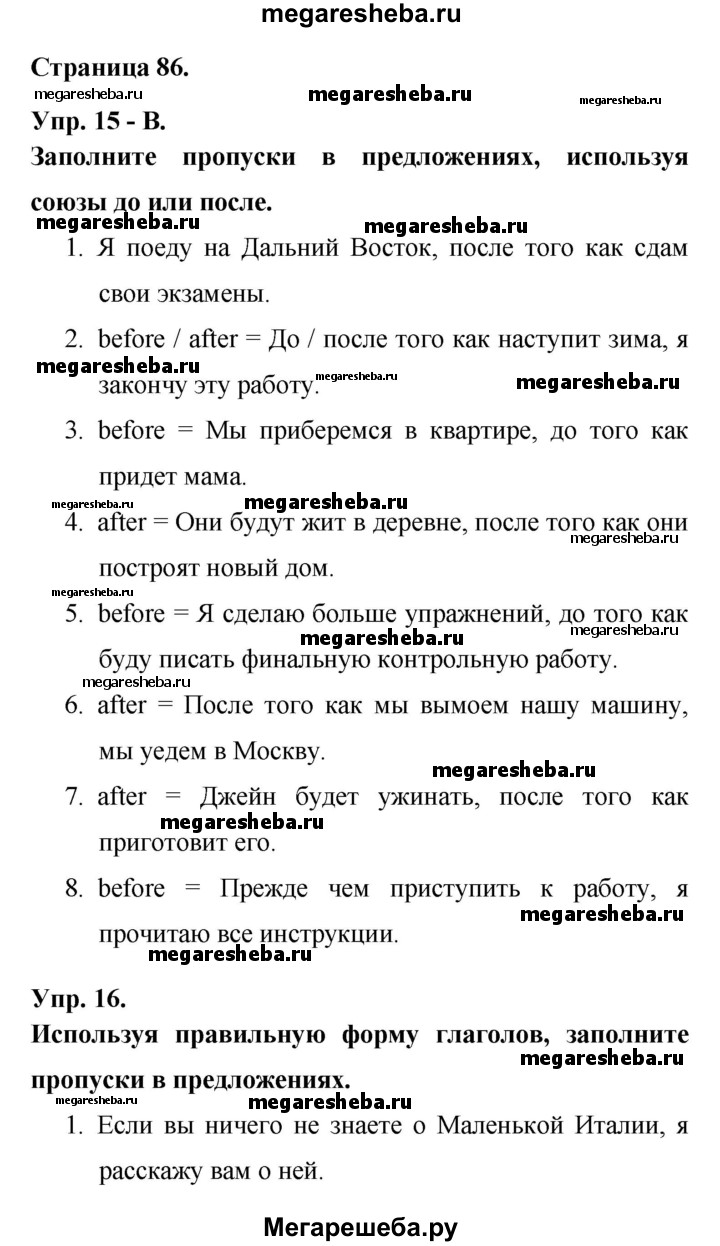 Подробный решебник (ГДЗ) по Английскому языку за 6 (шестой) класс лексико-грамматический практикум Rainbow - готовый ответ страница - 86. Авторы учебника: Афанасьева, Михеева, Баранова. Издательство: Дрофа 2016.