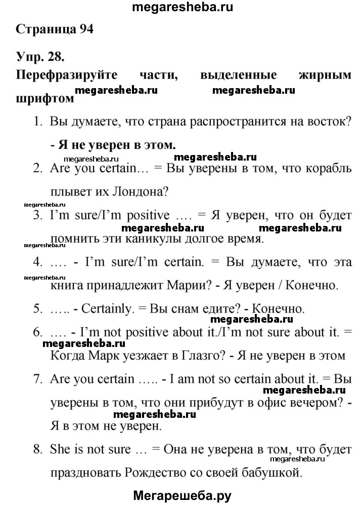 Подробный решебник (ГДЗ) по Английскому языку за 6 (шестой) класс лексико-грамматический практикум Rainbow - готовый ответ страница - 94. Авторы учебника: Афанасьева, Михеева, Баранова. Издательство: Дрофа 2016.
