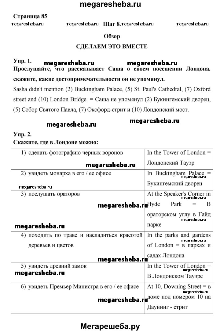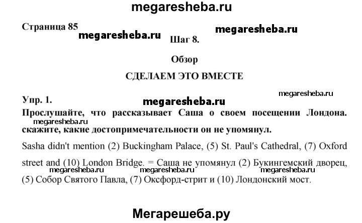 ГДЗ по английскому языку 6 класс Афанасьева rainbow часть 1. страница - 85