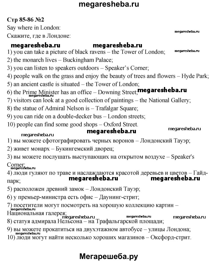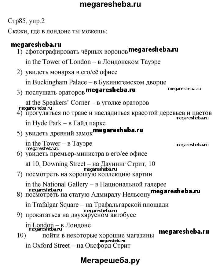Подробный решебник (ГДЗ) по Английскому языку за 6 (шестой) класс rainbow - готовый ответ часть 1. страница - 85. Авторы учебника: Афанасьева, Михеева, Баранова. Издательство: Дрофа 2016-2023.