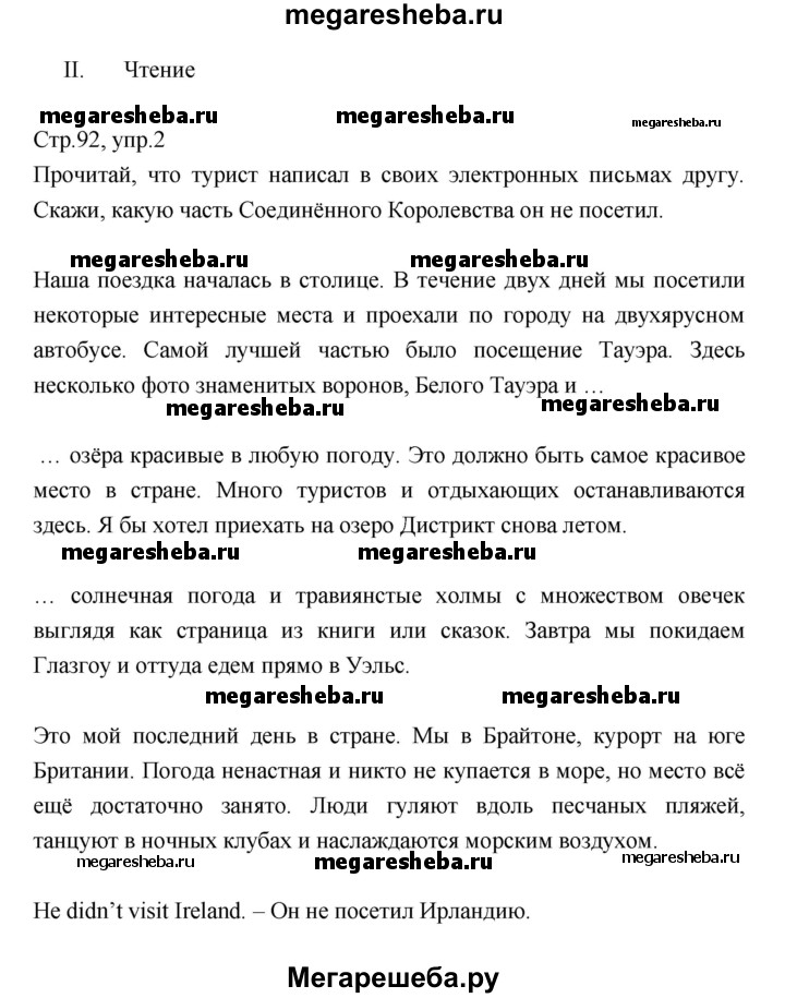 ГДЗ по английскому языку 6 класс Афанасьева rainbow часть 1. страница - 92