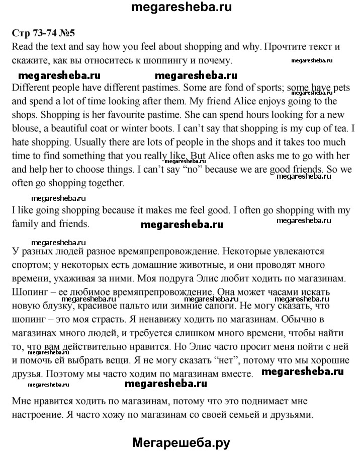 ГДЗ по английскому языку 6 класс Афанасьева rainbow часть 2. страница - 73