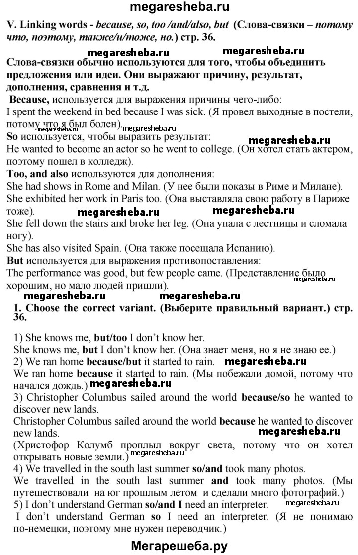 Подробный решебник (ГДЗ) по Английскому языку за 6 (шестой) класс сборник грамматических упражнений - готовый ответ страница - 36. Авторы учебника: Смирнов, Углубленный уровень. Издательство: Просвещение 2017-2023.