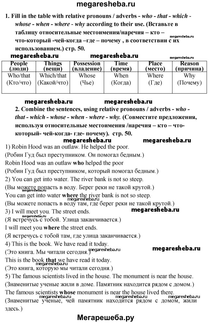 Подробный решебник (ГДЗ) по Английскому языку за 6 (шестой) класс сборник грамматических упражнений - готовый ответ страница - 50. Авторы учебника: Смирнов, Углубленный уровень. Издательство: Просвещение 2017-2023.