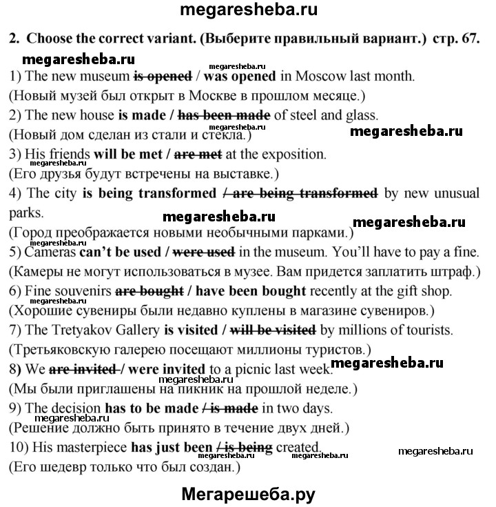 Подробный решебник (ГДЗ) по Английскому языку за 6 (шестой) класс сборник грамматических упражнений - готовый ответ страница - 67. Авторы учебника: Смирнов, Углубленный уровень. Издательство: Просвещение 2017-2023.