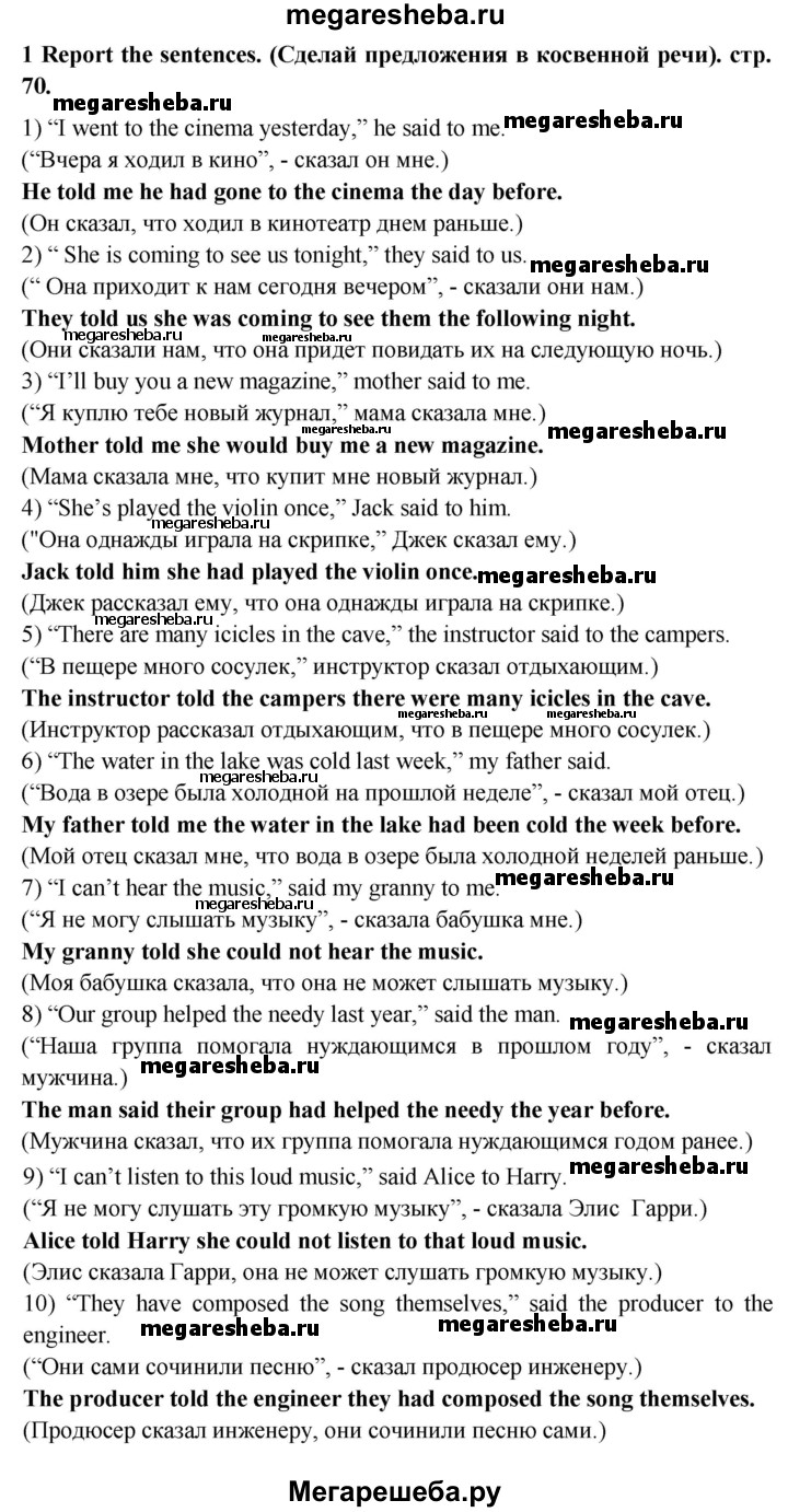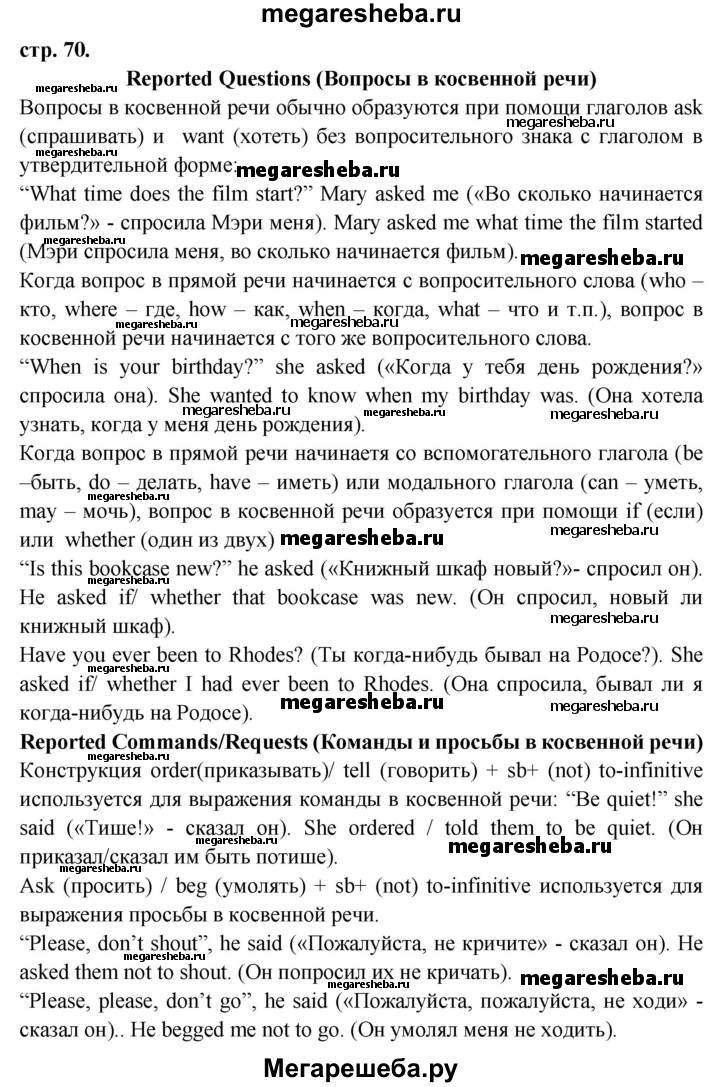 Подробный решебник (ГДЗ) по Английскому языку за 6 (шестой) класс сборник грамматических упражнений - готовый ответ страница - 70. Авторы учебника: Смирнов, Углубленный уровень. Издательство: Просвещение 2017-2023.