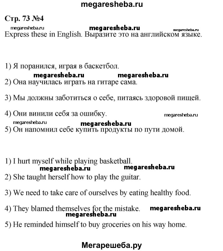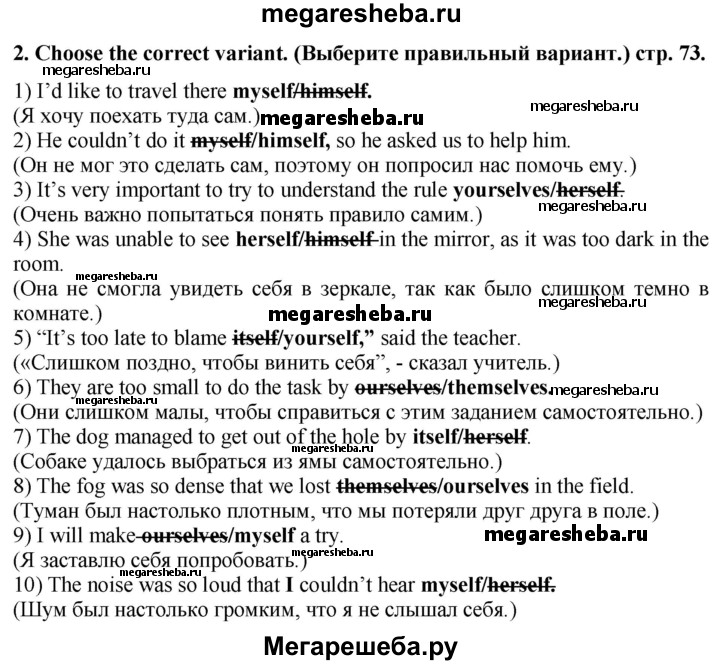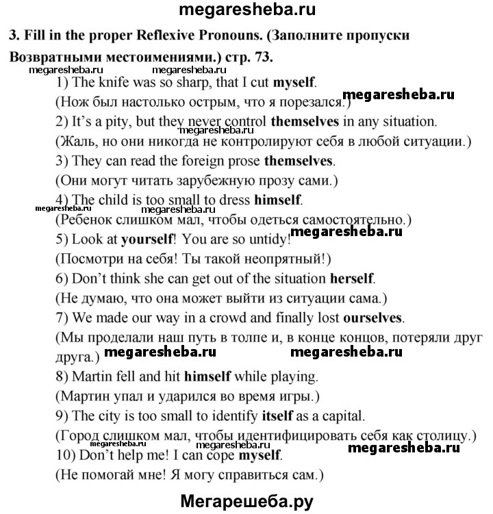 Подробный решебник (ГДЗ) по Английскому языку за 6 (шестой) класс сборник грамматических упражнений - готовый ответ страница - 73. Авторы учебника: Смирнов, Углубленный уровень. Издательство: Просвещение 2017-2023.