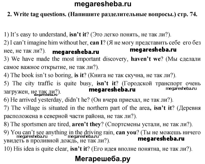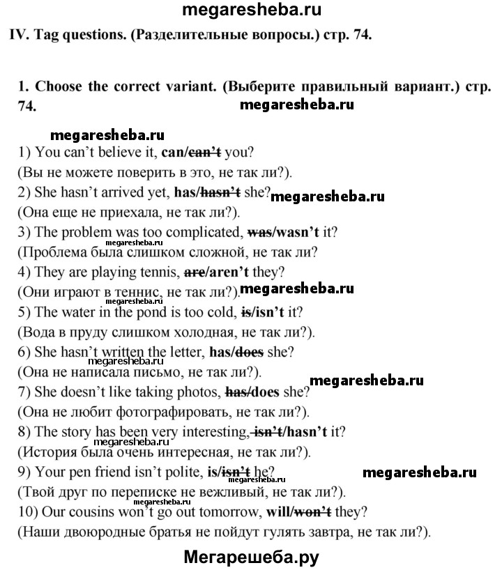Подробный решебник (ГДЗ) по Английскому языку за 6 (шестой) класс сборник грамматических упражнений - готовый ответ страница - 74. Авторы учебника: Смирнов, Углубленный уровень. Издательство: Просвещение 2017-2023.