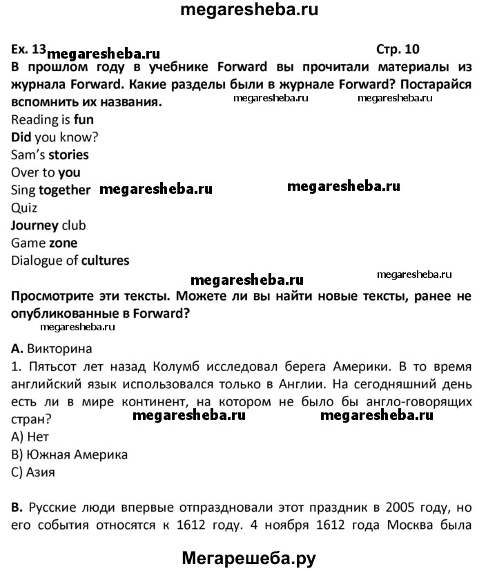 Подробный решебник (ГДЗ) по Английскому языку за 6 (шестой) класс Форвард - готовый ответ часть 1. страница - 10. Авторы учебника: Вербицкая, Гаярделли, Редли, Савчук. Издательство: Вентана-граф 2016-2023.