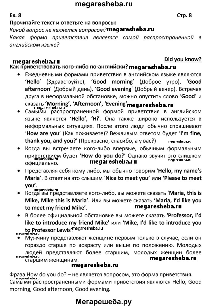 ГДЗ по английскому языку 6 класс Вербицкая Форвард часть 1. страница - 8