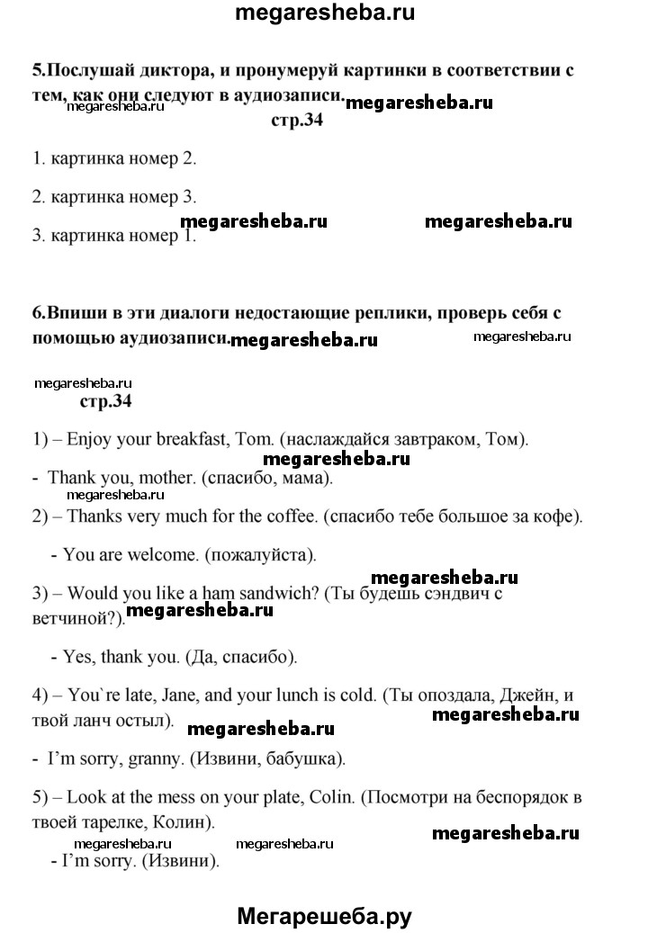 ГДЗ по английскому языку 6 класс Афанасьева рабочая тетрадь новый курс (2-ой год обучения) часть 2. страница - 34