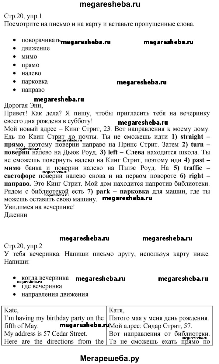 Подробный решебник (ГДЗ) по Английскому языку за 6 (шестой) класс Рабочая тетрадь Spotlight - готовый ответ страница - 20. Авторы учебника: Ваулина, Дули, Подоляко, Эванс. Издательство: Просвещение 2015-2023.