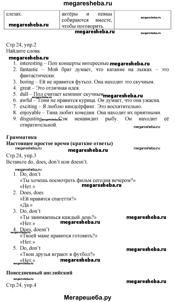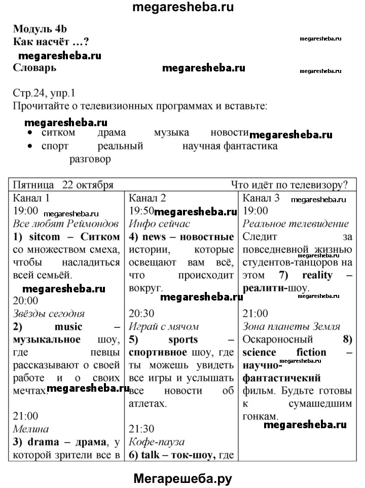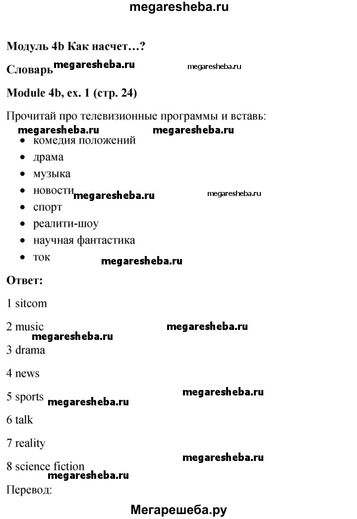 Подробный решебник (ГДЗ) по Английскому языку за 6 (шестой) класс Рабочая тетрадь Spotlight - готовый ответ страница - 24. Авторы учебника: Ваулина, Дули, Подоляко, Эванс. Издательство: Просвещение 2015-2023.