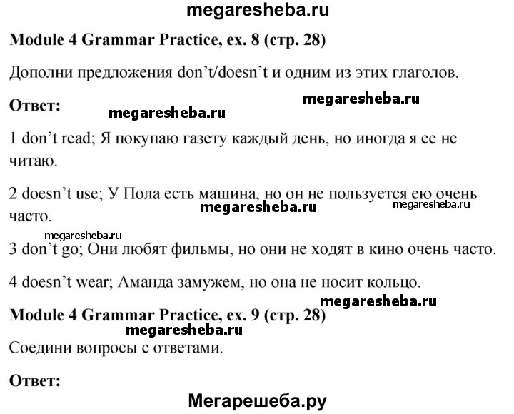 Подробный решебник (ГДЗ) по Английскому языку за 6 (шестой) класс Рабочая тетрадь Spotlight - готовый ответ страница - 28. Авторы учебника: Ваулина, Дули, Подоляко, Эванс. Издательство: Просвещение 2015-2023.