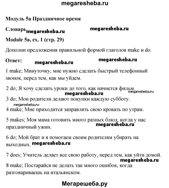 Подробный решебник (ГДЗ) по Английскому языку за 6 (шестой) класс Рабочая тетрадь Spotlight - готовый ответ страница - 29. Авторы учебника: Ваулина, Дули, Подоляко, Эванс. Издательство: Просвещение 2015-2023.