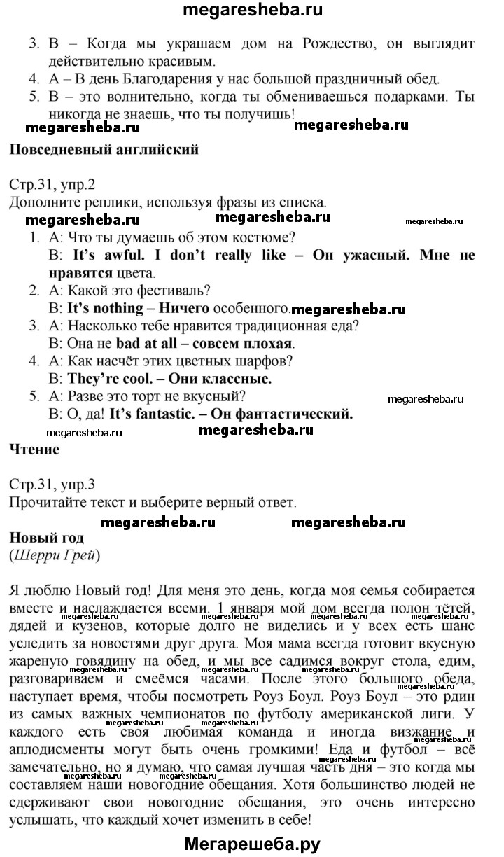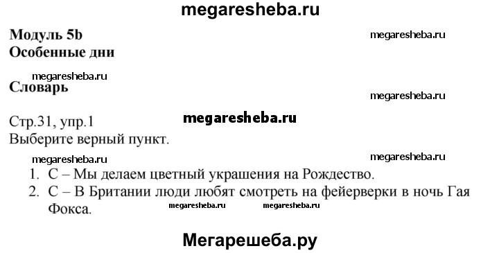 Подробный решебник (ГДЗ) по Английскому языку за 6 (шестой) класс Рабочая тетрадь Spotlight - готовый ответ страница - 31. Авторы учебника: Ваулина, Дули, Подоляко, Эванс. Издательство: Просвещение 2015-2023.