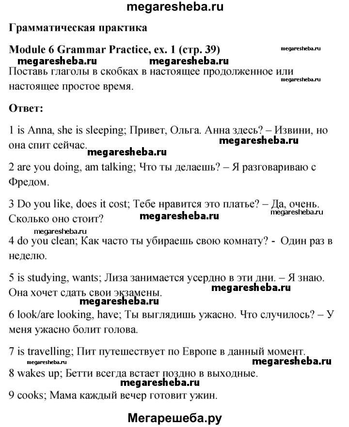 Подробный решебник (ГДЗ) по Английскому языку за 6 (шестой) класс Рабочая тетрадь Spotlight - готовый ответ страница - 39. Авторы учебника: Ваулина, Дули, Подоляко, Эванс. Издательство: Просвещение 2015-2023.