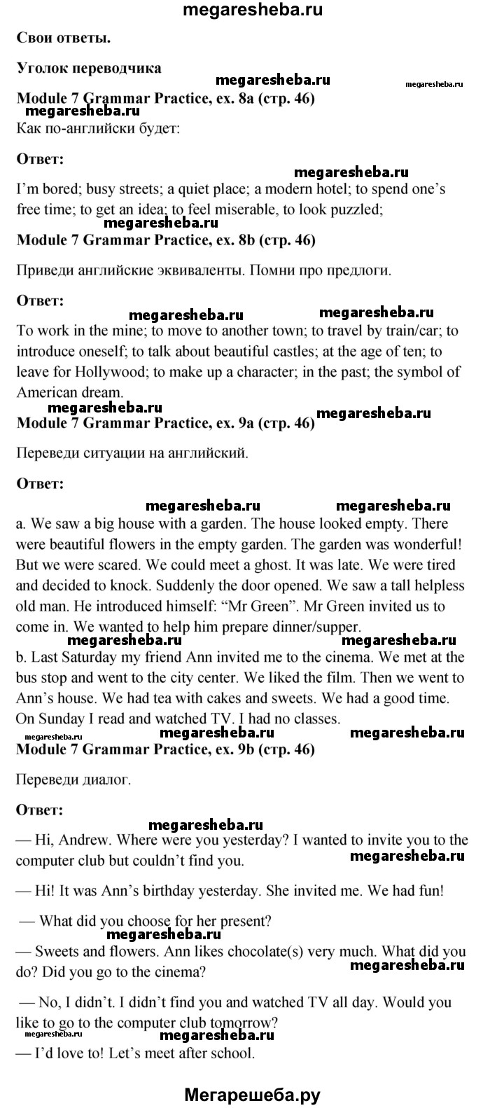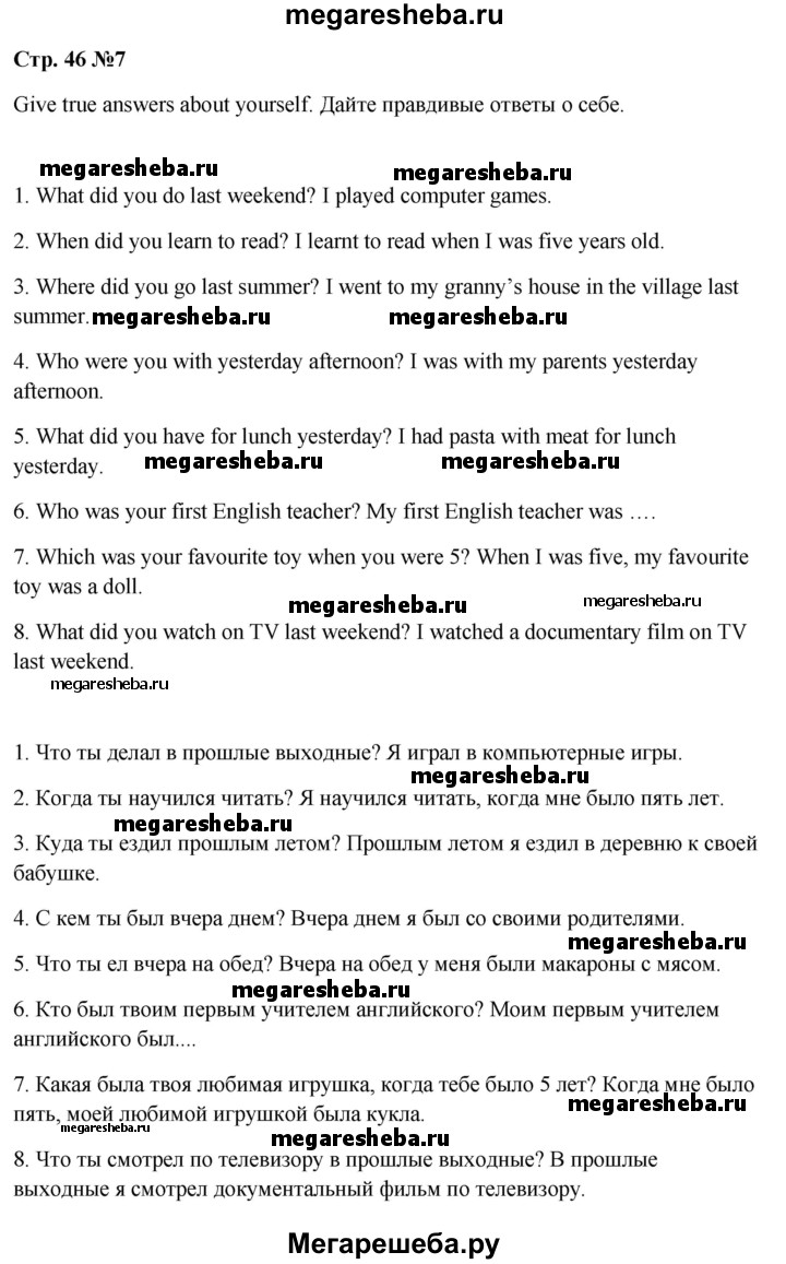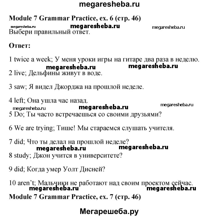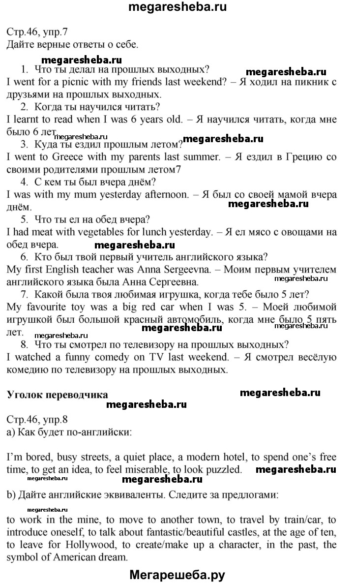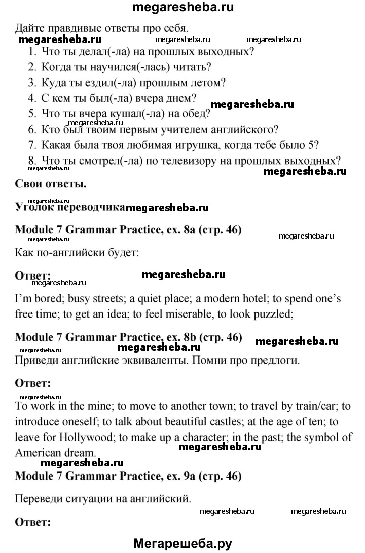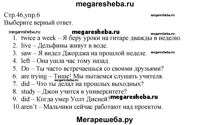 Подробный решебник (ГДЗ) по Английскому языку за 6 (шестой) класс Рабочая тетрадь Spotlight - готовый ответ страница - 46. Авторы учебника: Ваулина, Дули, Подоляко, Эванс. Издательство: Просвещение 2015-2023.