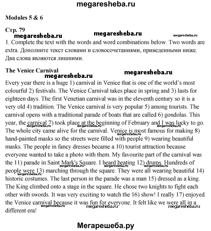 Подробный решебник (ГДЗ) по Английскому языку за 6 (шестой) класс Рабочая тетрадь Spotlight - готовый ответ страница - 79. Авторы учебника: Ваулина, Дули, Подоляко, Эванс. Издательство: Просвещение 2015-2023.