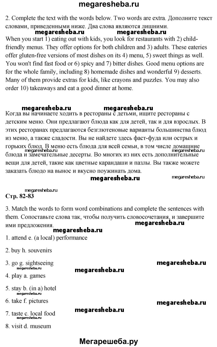 Подробный решебник (ГДЗ) по Английскому языку за 6 (шестой) класс Рабочая тетрадь Spotlight - готовый ответ страница - 82. Авторы учебника: Ваулина, Дули, Подоляко, Эванс. Издательство: Просвещение 2015-2023.