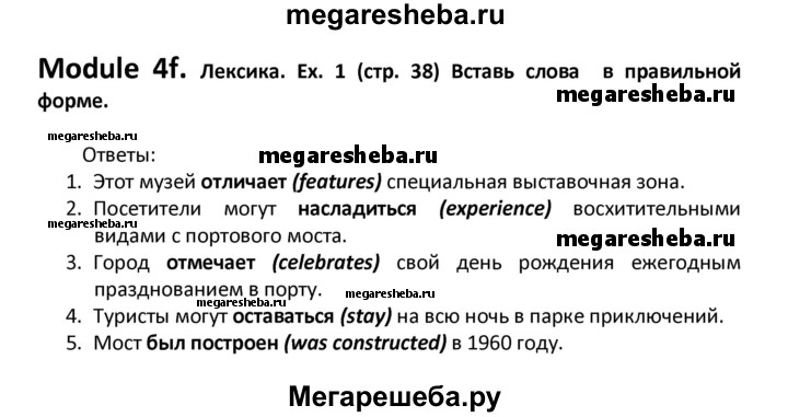 Подробный решебник (ГДЗ) по Английскому языку за 6 (шестой) класс рабочая тетрадь Starlight - готовый ответ страница - 38. Авторы учебника: Баранова, Дули, Копылова, Мильруд, Эванс, Углубленный уровень. Издательство: Просвещение 2016-2023.