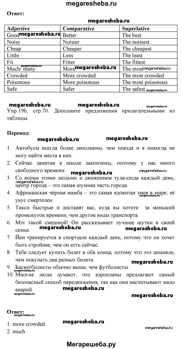 Подробный решебник (ГДЗ) по Английскому языку за 6 (шестой) класс рабочая тетрадь Starlight - готовый ответ страница - 70. Авторы учебника: Баранова, Дули, Копылова, Мильруд, Эванс, Углубленный уровень. Издательство: Просвещение 2016-2023.