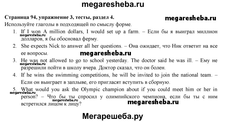 ГДЗ по английскому языку 7 класс Биболетова рабочая тетрадь с контрольными работами Enjoy English страница - 94
