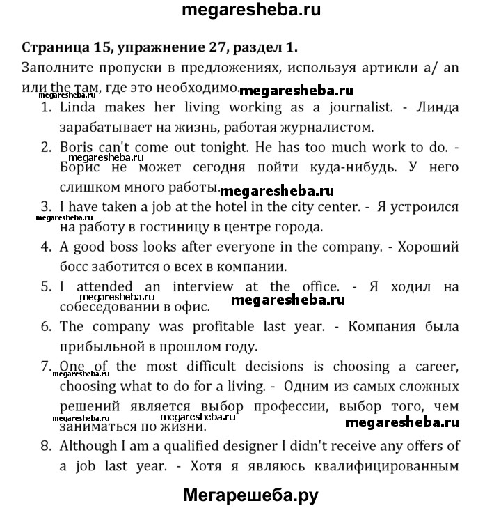 Подробный решебник (ГДЗ) по Английскому языку за 8 (восьмой) класс рабочая тетрадь Activity Book - готовый ответ unit 1 - 27. Авторы учебника: Афанасьева, Михеева, Углубленный уровень. Издательство: Просвещение 2015.